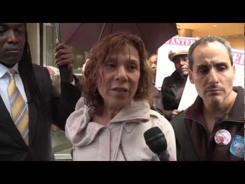 Rebecca Project for Human Rights, een toonaangevende mensenrechtenorganisatie in Washington, DC die zich inzet voor het bestrijden van seksueel geweld, protesteerde voor het gebouw in NYC van pensioenbeheerder APG op 19 oktober 2012.