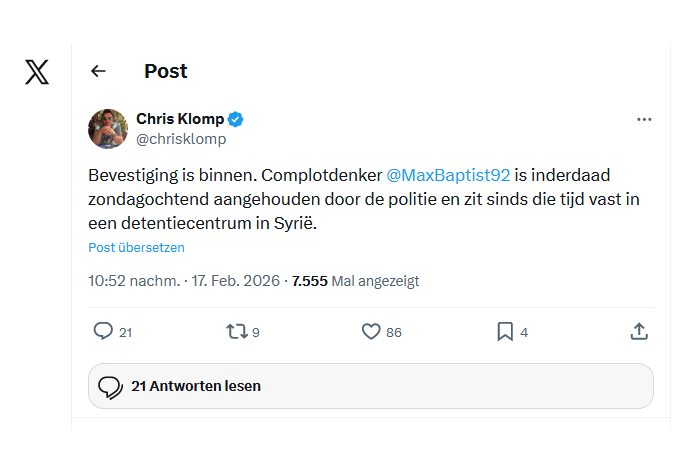 Chris Klomp publiceerde op 20-02-2026 het volgende bericht op X.