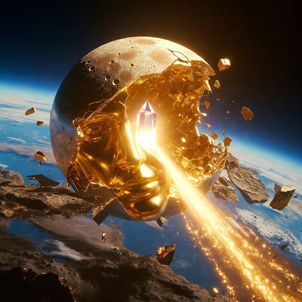 STARLINK HEEFT HET LIVE VASTGELEGD: DE HOLLE TARTARISCHE KRISTALLEN BOL (DE OORSPRONKELIJKE TUIN VAN EDEN) SCHEURDE OPEN ALS EEN REUZENEI EN EEN 150 METER HOGE GOUDEN REUS!