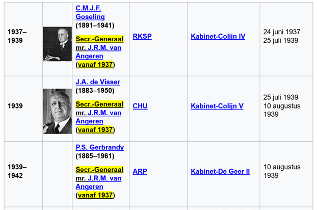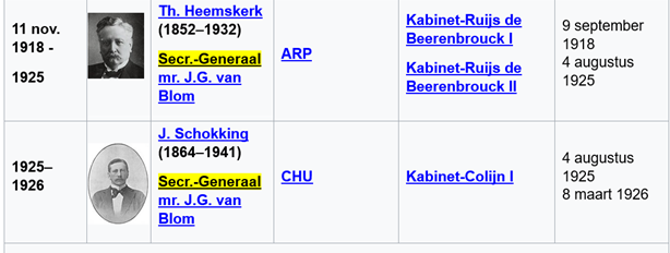 Het zijn de opvolgende Protestante minister J. (Jan) Donner van Justitie ( - werd na zijn aftreden als minister in 1933 raadsheer in de Hoge Raad. Tijdens de Tweede Wereldoorlog betrokken bij het kerkelijk verzet en enige tijd geïnterneerd. Nam ontslag als raadsheer, zonder overigens afstand te nemen van het beleid van de Hoge Raad tijdens de bezetting. Werd desondanks vanwege zijn houding in de oorlog in 1946 benoemd tot president van ons hoogste rechtscollege de Hoge Raad. Was tevens lange tijd voorzitter van de Kiesraad en werd in 1971 minister van staat - ) en opvolgende Rooms-Katholieke minister J.R.H. (Joop) van Schaik van Justitie (- kreeg te maken met de problemen rond de instroom van Duitse (deels Joodse) vluchtelingen en voerde een restrictief toelatingsbeleid. Werd in 1937 weer Kamervoorzitter. Protesteerde op 10 mei 1940 kort, maar krachtig tegen de Duitse inval. Formeerde in 1948 met Willem Drees een kabinet op brede basis en gaf daaraan als vicepremier mede leiding. Bracht een nieuwe staatsregeling voor Suriname tot stand - ) die in samenwerking met hun Secretarissen-Generaal mr. J.G. van Blom (tot 1934, zijn vader was Kamerlid en raadsheer in de Hoge Raad), en mr. J.P. de Meijere (tot 1937, was eerder directeur-generaal van de afdeling gevangenis- en tuchtwezen en Zwager van de liberale voorman)