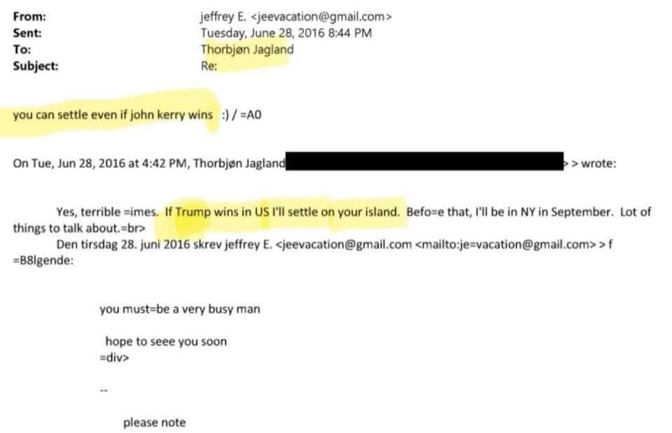 In een brief aan Epstein zei de premier: 'Als Trump de verkiezingen wint, ga ik op je eiland wonen.'