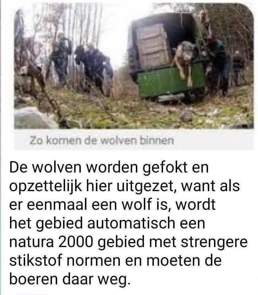 Echte wolven doden niet voor hun plezier, maar alleen om aan hun voedingsbehoefte te voldoen. Dat wat nu "wolven" genoemd worden, is een kruising tussen een Tsjechische herder en een wolf en maken deel uit van Agenda 2030 om de buitengebieden rondom 15 minuten steden gevaarlijk en ontoegankelijk te maken. Zodoende zullen mensen, (uit vrije wil), zich laten ophokken in deze steden. Ongetwijfeld zullen deze dieren genetisch aangepast zijn.
