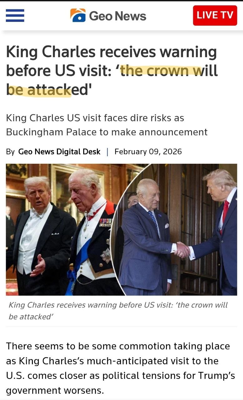 VOORAANKONDIGING - Er lijkt enige commotie te ontstaan nu het langverwachte bezoek van koning Charles aan de VS dichterbij komt, terwijl de politieke spanningen rond de regering-Trump toenemen.