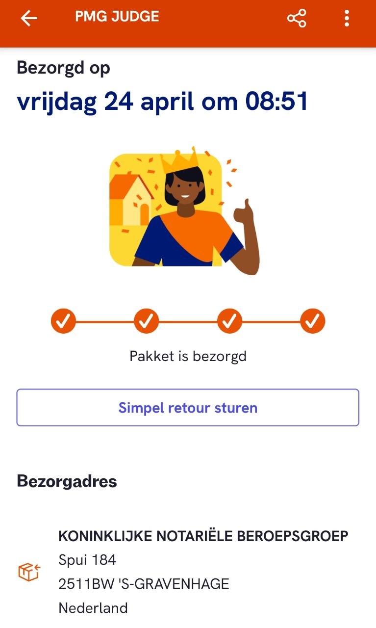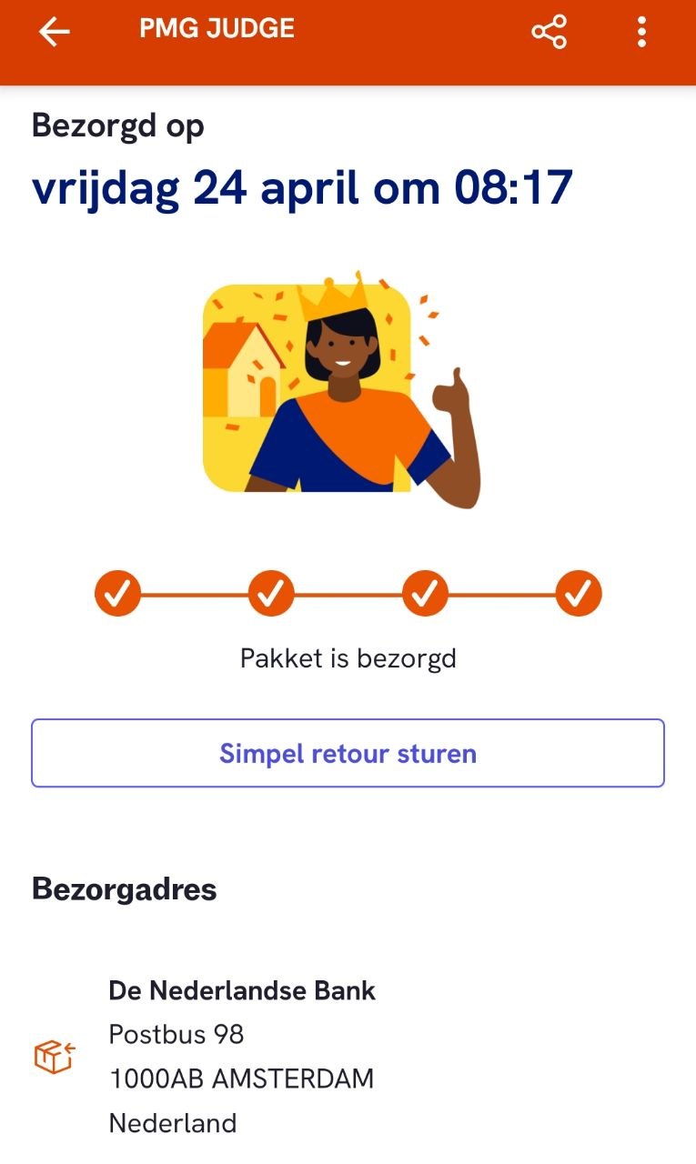 Hieronder staan de postbewijzen wanneer de poststukken bezorgd zijn.