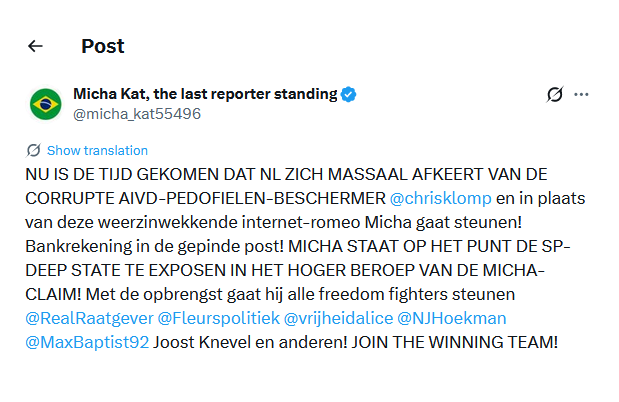 MICHA STAAT OP HET PUNT DE SP-DEEP STATE TE EXPOSEN IN HET HOGER BEROEP VAN DE MICHA-CLAIM!