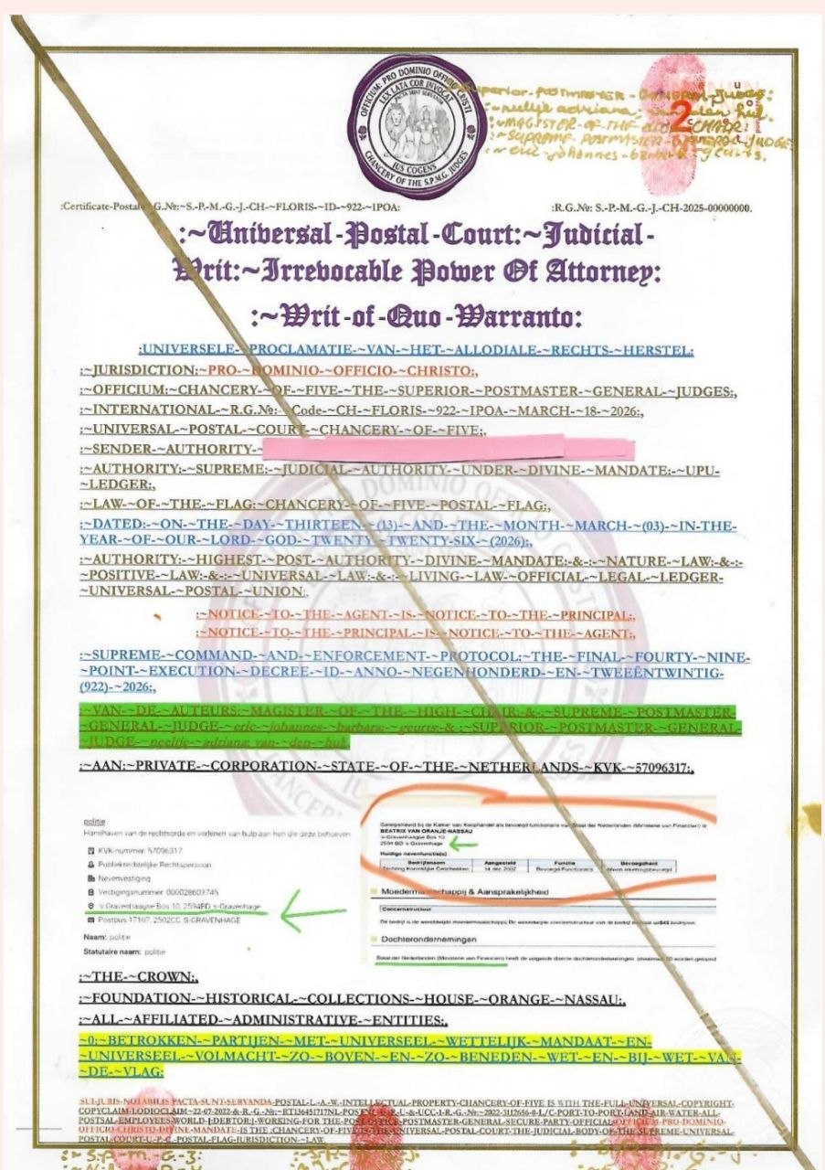 UNIVERSAL PROCLAMATIE VONNIS VAN HET ALLODIALE RECHTS HERSTEL (MAART 2026)