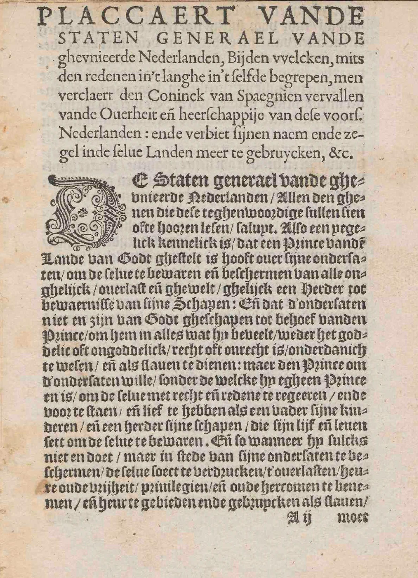 - Matthias Storme (Katholieke Universiteit Leuven) Volledige tekst van het Plakkaat van Verlatinghe