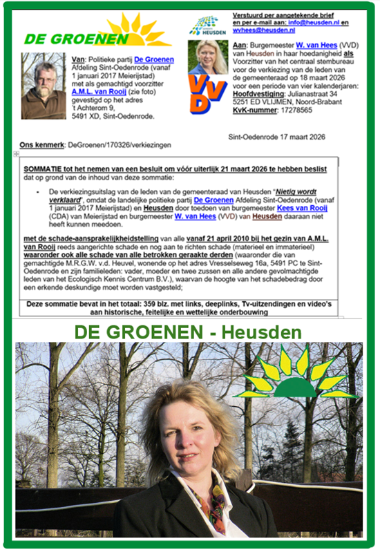 SOMMATIE van voorzitter Ad van Rooij van De Groenen, afdeling Meierijstad en Heusden, aan VVD-burgemeester Willemijn van Hees om NIETIG VERKLARING van de gemeenteraadsverkiezingen op 18 maart 2026