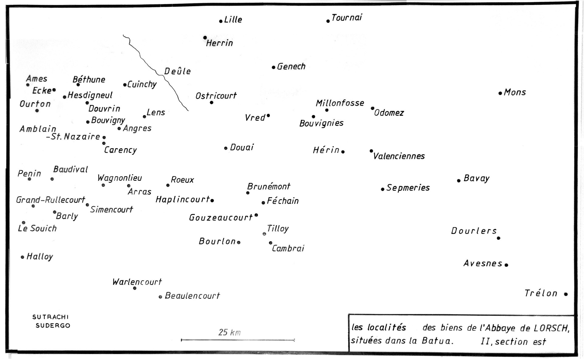 In de documentatie van de abdij van Lorsch tussen 776 en 1024 worden 130 plaatsen genoemd die volgens die documentatie in Batua liggen. Die zijn in de Nederlandse Betuwe onvindbaar. Albert Delahaye heeft al die plaatsen wèl gelocaliseerd, niet in de Betuwe, maar in Frankrijk. Daarmee wordt dan ook bewezen dat de Batua niet de Betuwe was, maar een landstreek in Noord-Frankrijk. Lees meer over de 130 plaatsen in de Batua.