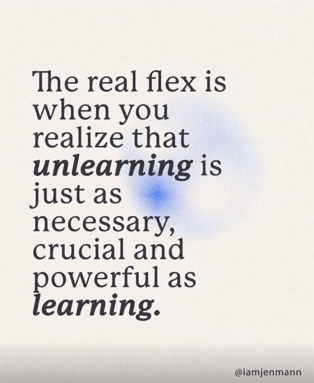 The real flex is when you realize that unlearning is just as necessary, crucial and powerful as learning. —@iamjenmann