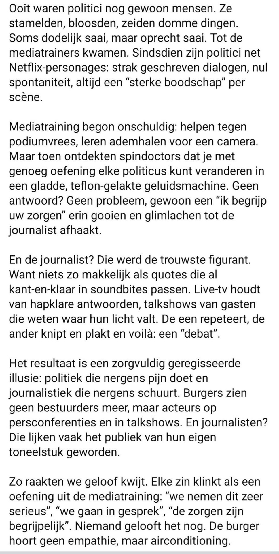 Column: Mediatraining: hoe we van politici acteurs maakten en van journalistiek karaoke door Max von Kreyfelt