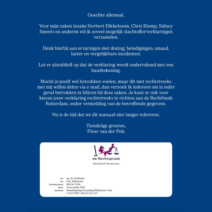 OPROEP VAN ACTIVISTE FLEUR VAN DER POLS OP TWITTER (X)